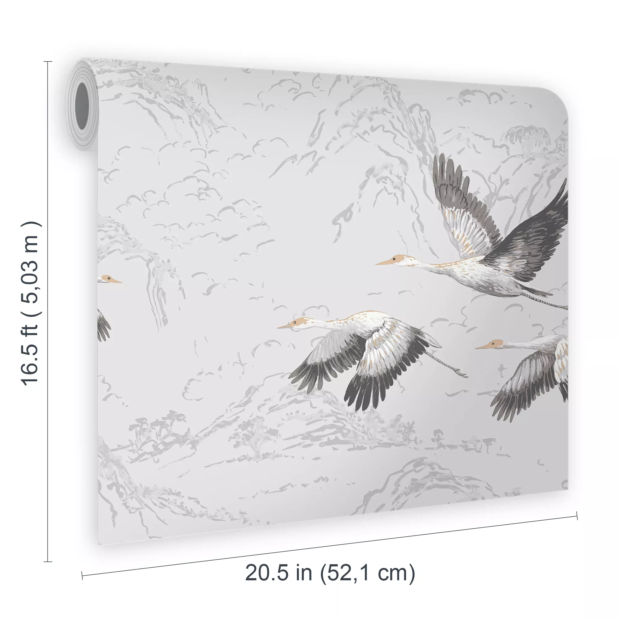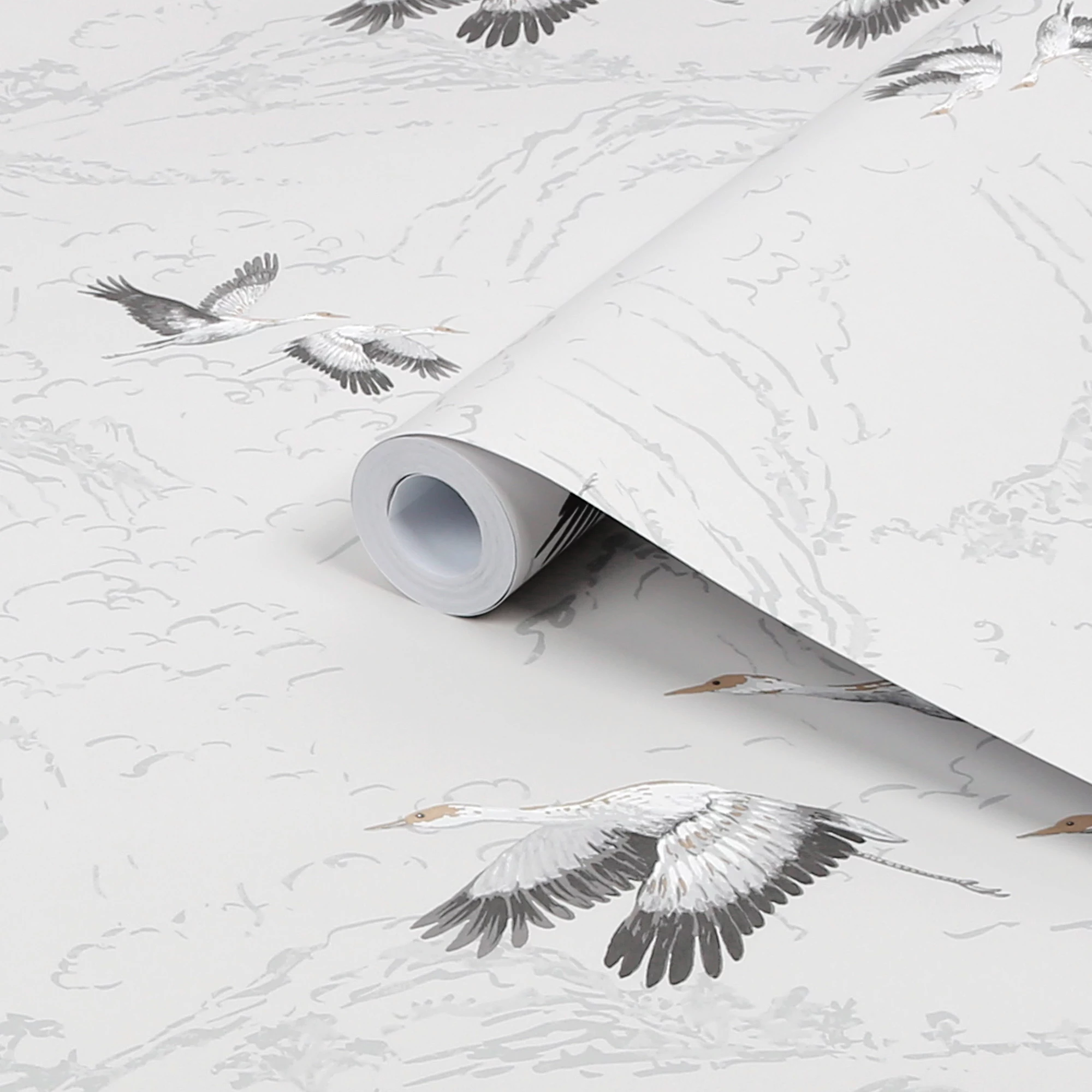 Animalia is a graceful design featuring cranes in flight to add a contemporary yet classic feel to your home.