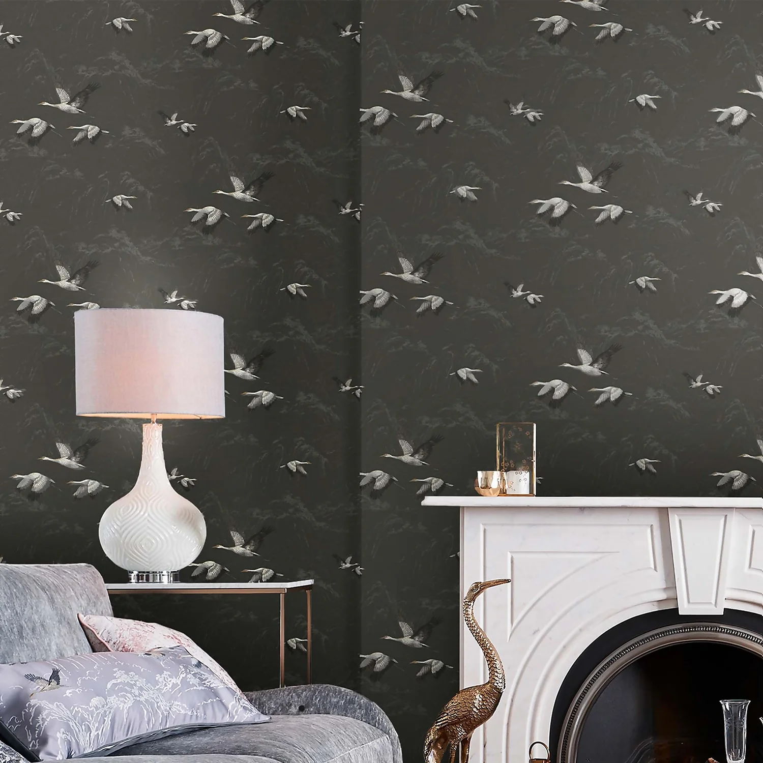 With a matt dark steel background Animalia is a gorgeous pattern of grey and white cranes, amongst the outline of clouds. All Laura Ashley wallpapers are printed in the UK and are paste the wall application; simply paste the wall, hang your paper, and leave to dry. For best results we recommend using Laura Ashley wallpaper paste. Co-ordinate your look with complimentary paint, pairs with Laura Ashley Dark Slate 616051, Pale Slate 616048 and Slate White 616046. Each roll is 10m long and 52cm wide. Delivery to UK Mainland Only.