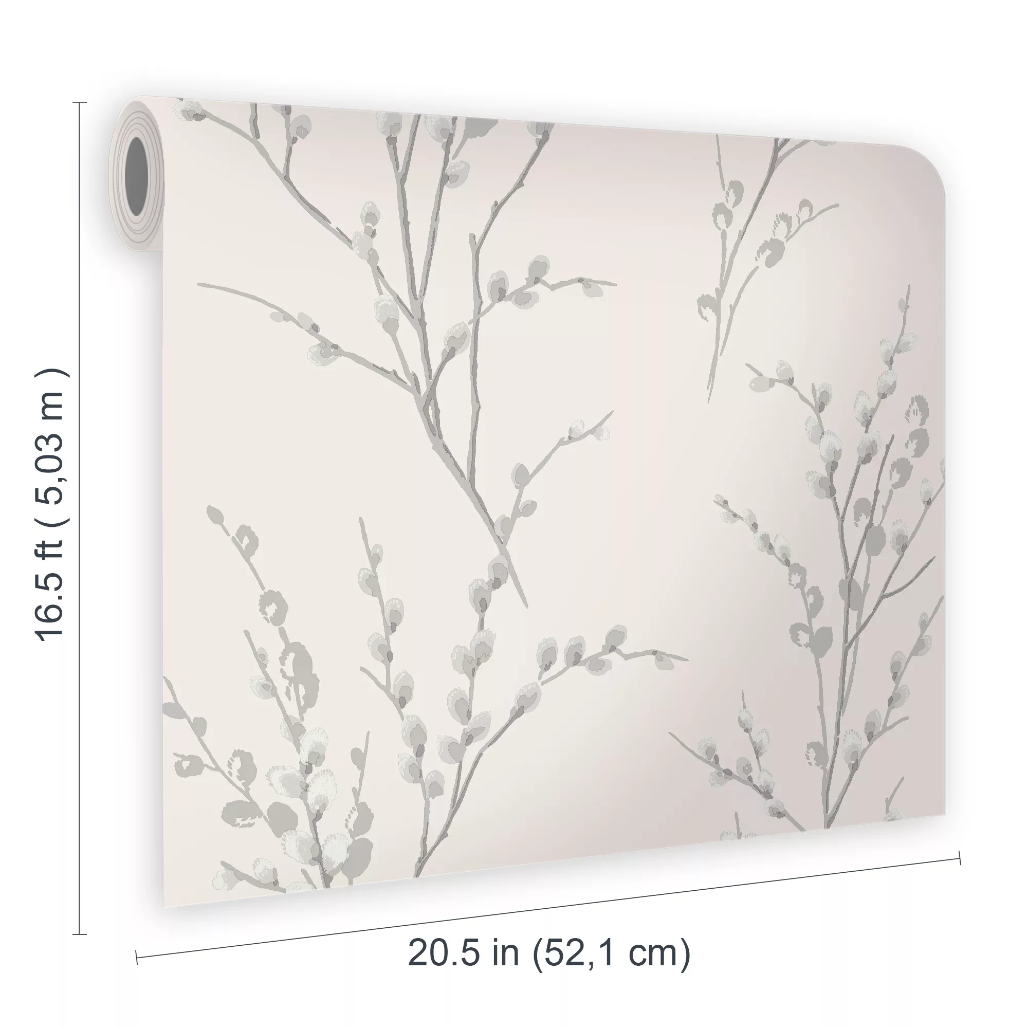 A clean fresh floral design, the Pussy Willow print wallpaper is an elegant choice for any room. The steel highlights on an off white background add a contemporary edge.